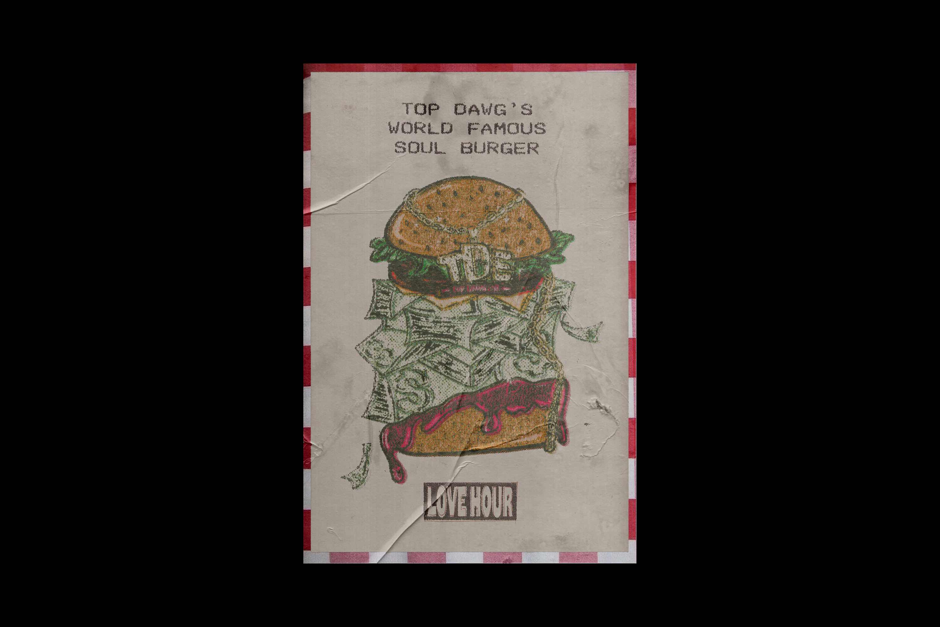 Packaging and merch design for Soul Burger with a focus on paying homage to Ab-Soul's late friend, DoeBurger.